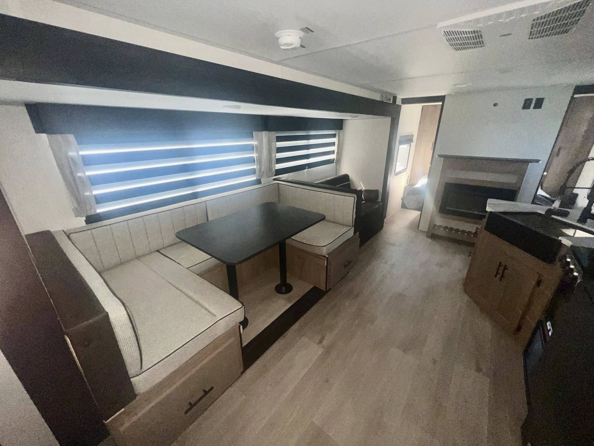 Outdoor kitchen with refrigerator, grill/griddle, ice maker, and water access